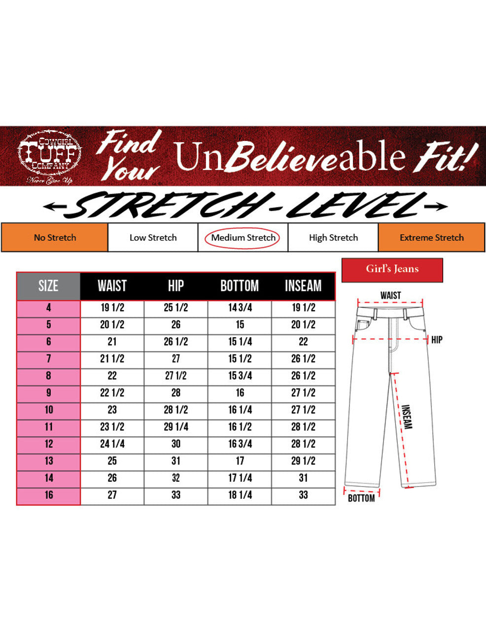 Atttention Moms! You are going to love these New Pull On Elastic Waisted jeans for your girls! No more buttons & zippers! Just pull them on with comfy stretch denim that they will absolutely love. All the same great features as our normal girls jeans. Check size charts for the perfect fit.