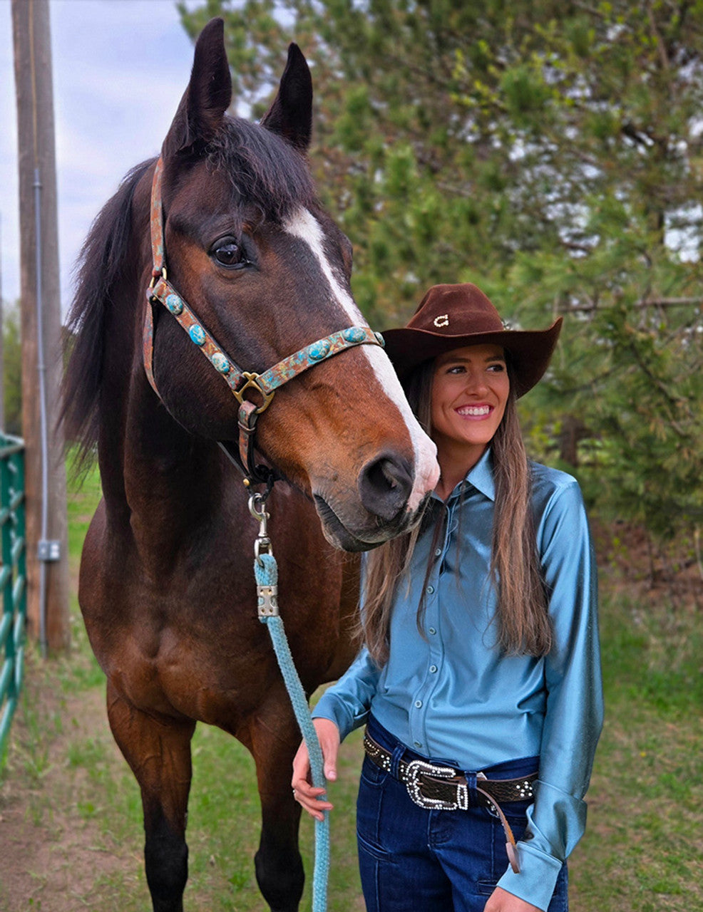 The “ORIGINAL” Pullover Button Up was invented by our Owner and Designer Lisa Bollin in 2018 after being so frustrated when getting her buttons hooked on the horn and popping her shirt open during a competition run. While designing this incredible shirt she made sure to add a longer back tail to stay tucked in, longer arm length for reaching and only using the highest quality stretch fabrics. The no-gapping front button placket has three functional buttons for easy on-and-off and six faux buttons that create the appearance of a classic button-down and so flattering. They are FUNCTIONAL and THE SAFEST SHIRT YOU'LL EVER WEAR COMPETING.